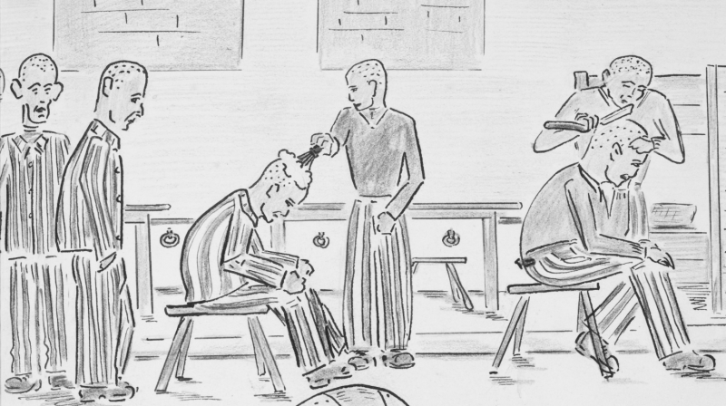 • Gezeichnete Darstellung des KZ-Häftlings Paul Wernet (1944 oder 1945, Kempten)