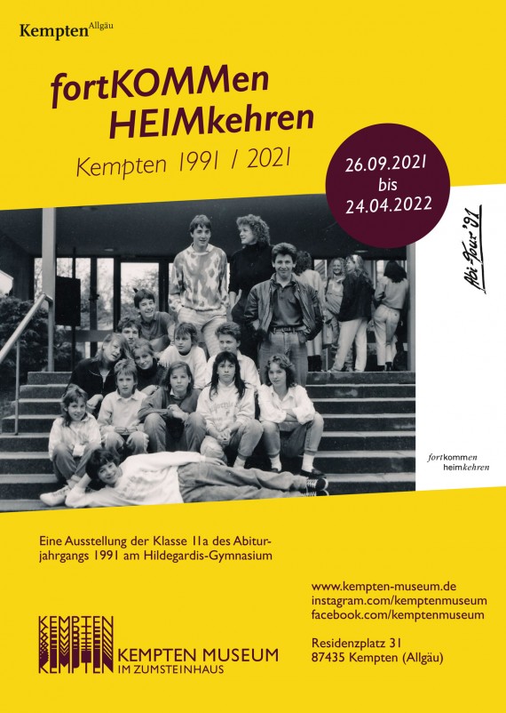 Die Ausstellung „fortKOMMen – HEIMkehren, Kempten 1991/2021“ wurde als interaktives Ausstellungprojekt von der Klasse 11a des Abiturjahrgangs 1991 am Hildegardis-Gymnasium konzipiert und lädt Besucher:innen an unterschiedlichen Stellen zum Mitmachen ein.