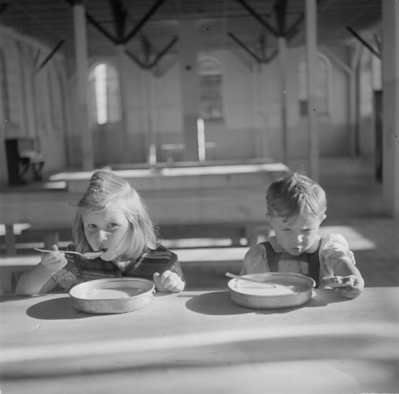 Bei der morgendlichen Breimahlzeit in der großen Speisehalle. Foto: Kazys Daugėla © Ruta Daugela